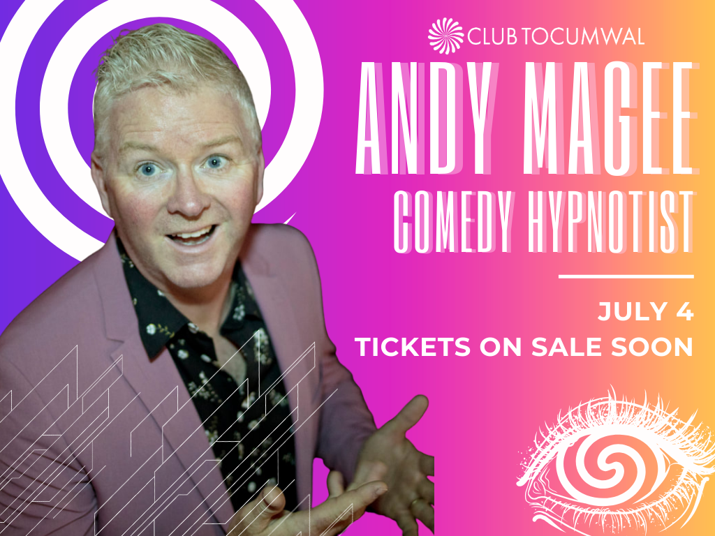 Andy Magee will be bringing his comedy Hypnosis show to Club Tocumwal. Buckle up for a night of laughs and surprises.