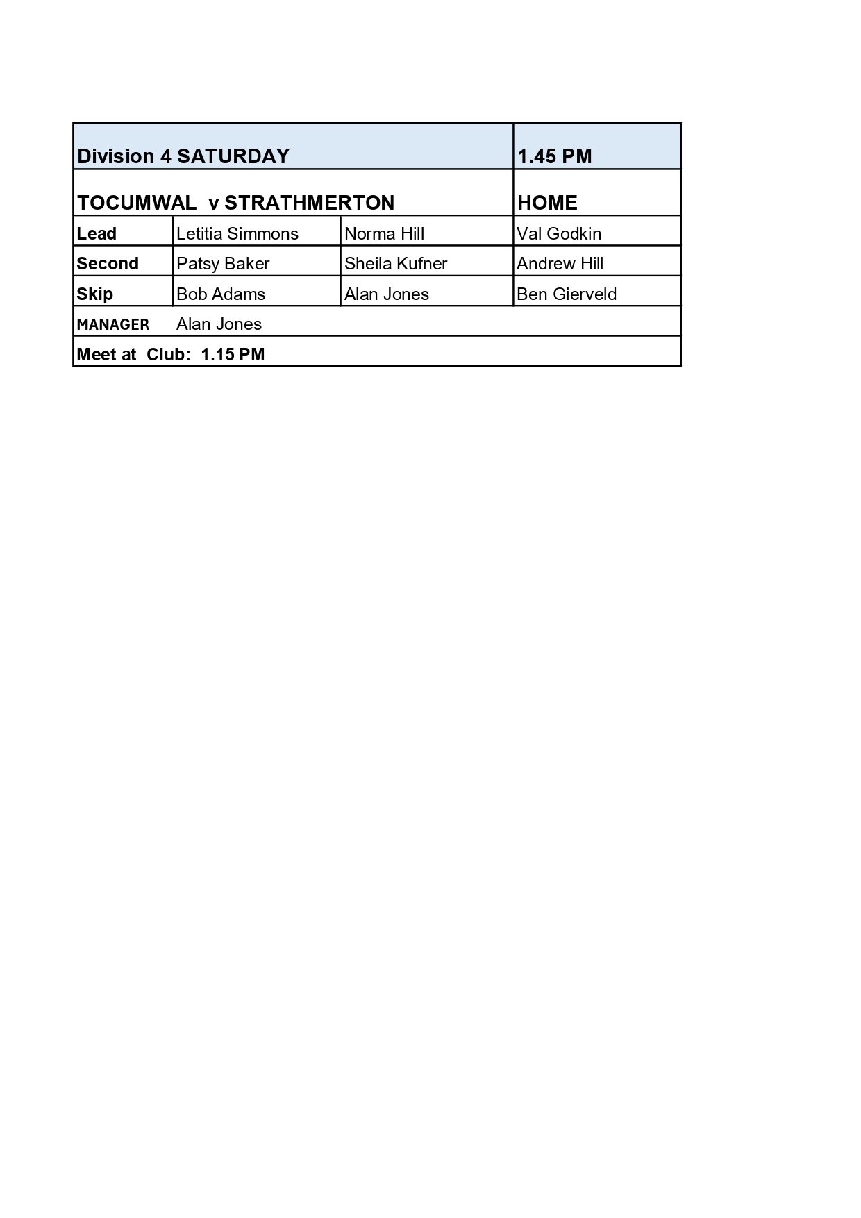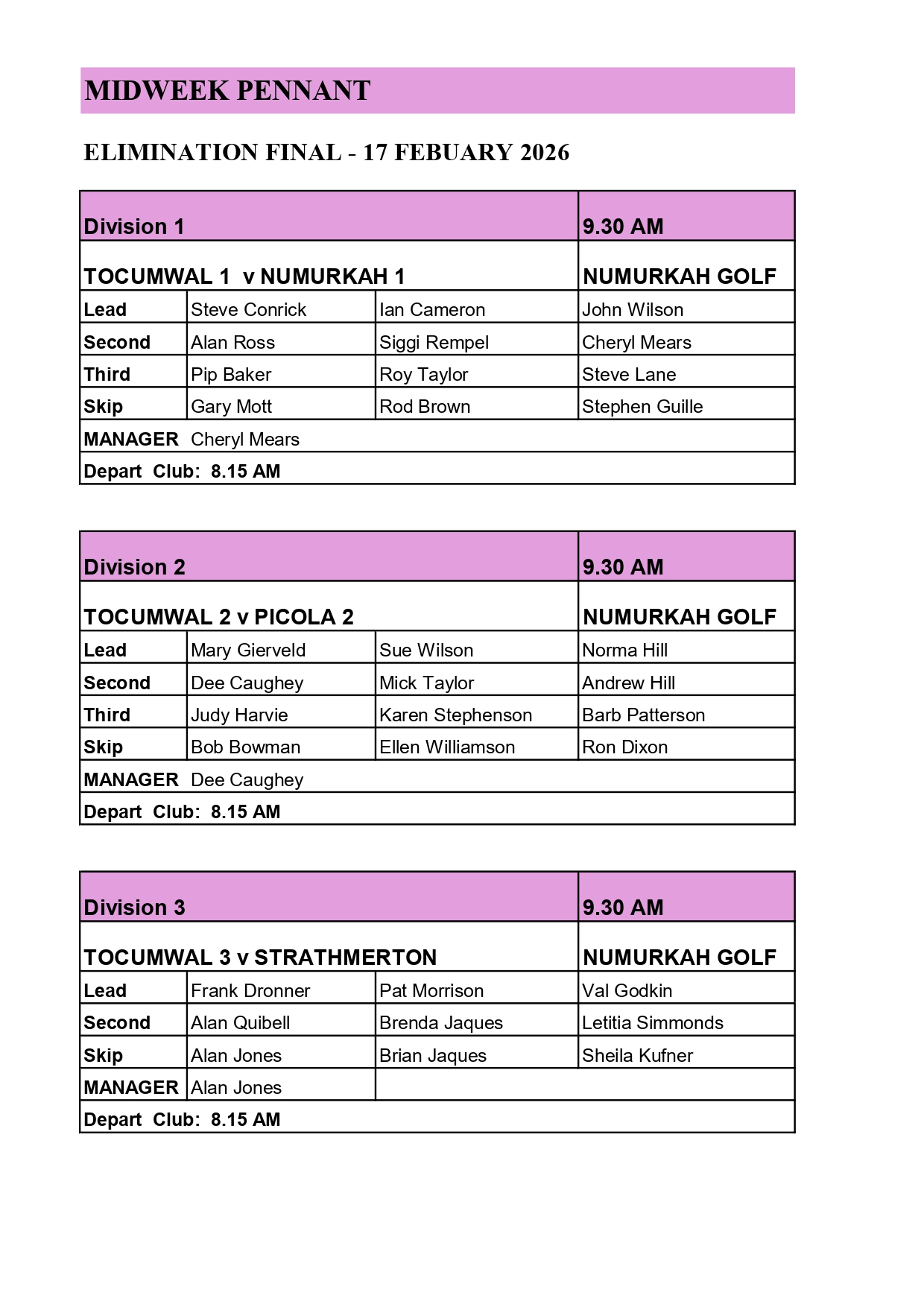 2026 Club Tocumwal Syllabus